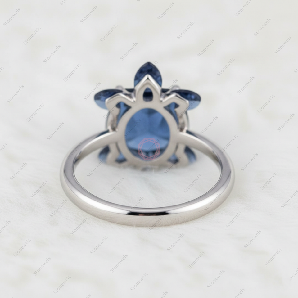 Solid Lab Grown Fancy Blue Turtle Shape Diamond Ring