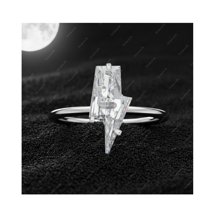 Solid Lab Grown Lightning Strike Shape Diamond Ring