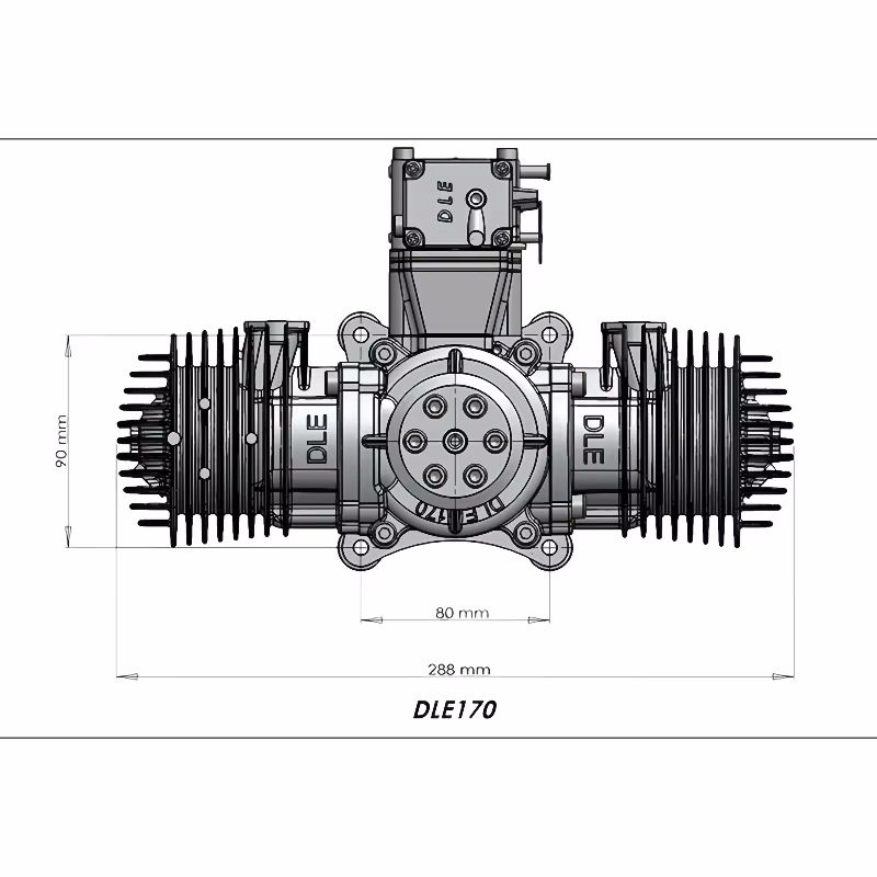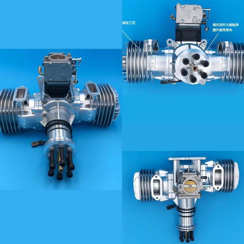 เครื่องยนต์แก๊สรุ่น DLE170 สำหรับอากาศยานแบบสองสูบ สองจังหวะ ระบายไอเสียด้านข้าง ระบายความร้อนด้วยอากาศธรรมชาติ ความจุ 170 ซีซี สำหรับโดรน