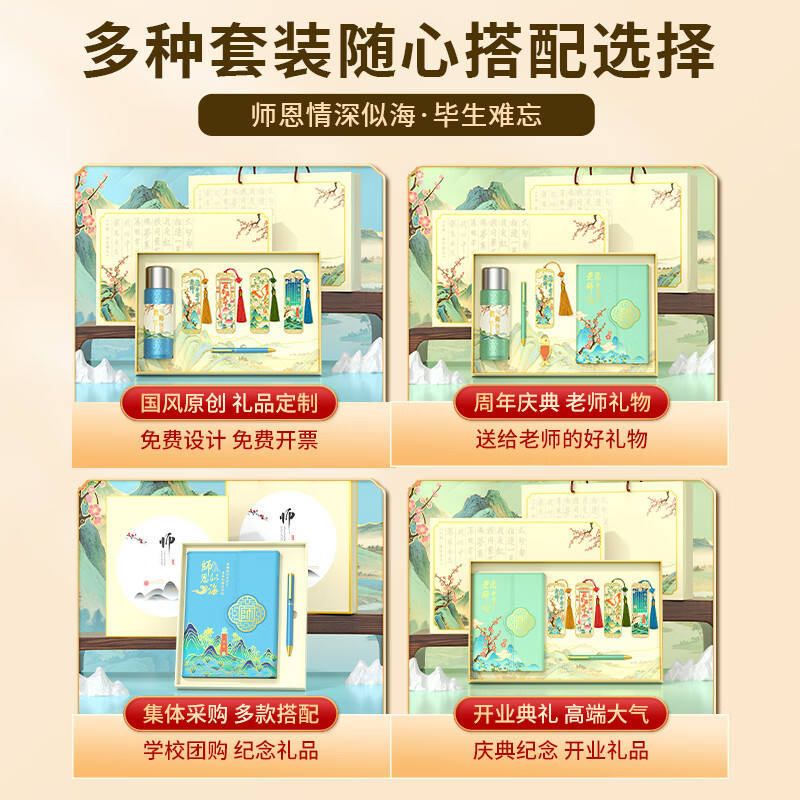 กล่องของขวัญสไตล์จีนแบบดั้งเดิม ชุดของขวัญวันครู ปรับแต่งได้สำหรับครู ของขวัญต้อนรับเปิดเทอม