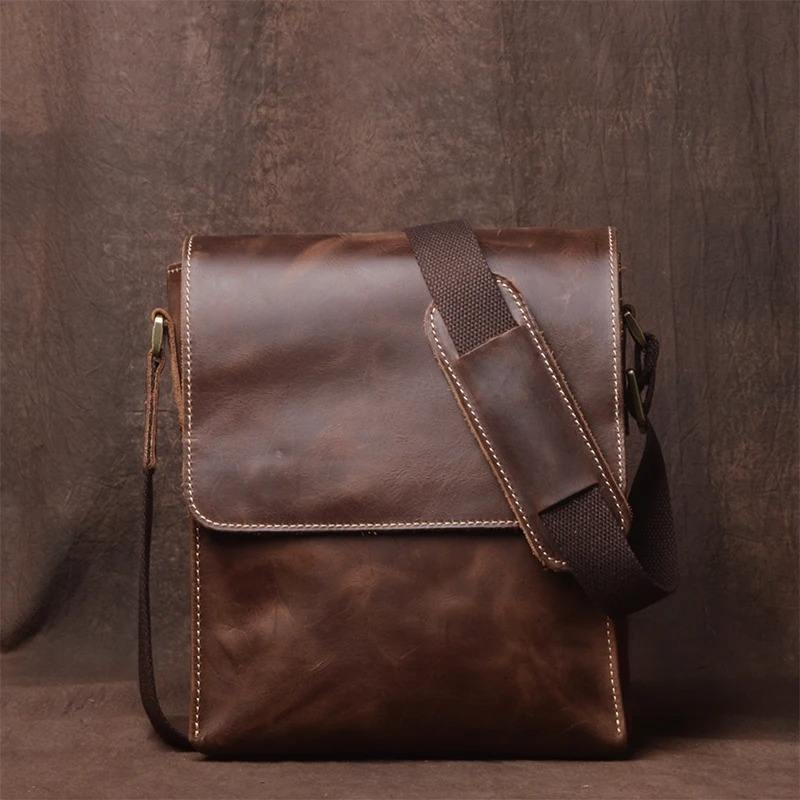กระเป๋าสะพายพาดลำตัวหนังแท้คุณภาพสูงผลิตด้วยมือ OEM ดีไซน์ดั้งเดิมกระเป๋าสะพายพาดลำตัวหนัง Crazy Horse ขนาดใหญ่