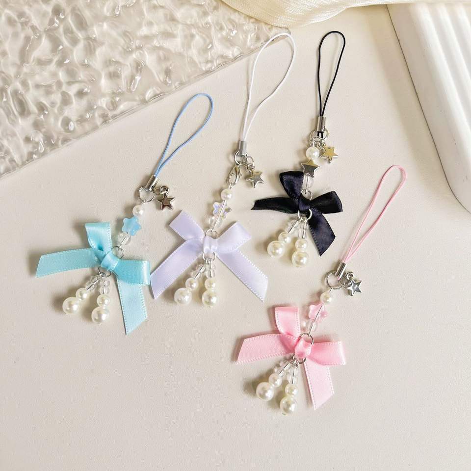 Original Design Sweet Girl Heart Pearl Bow Bag Pendant Mobile Phone Pendant Student Gift Mobile Phone Chain