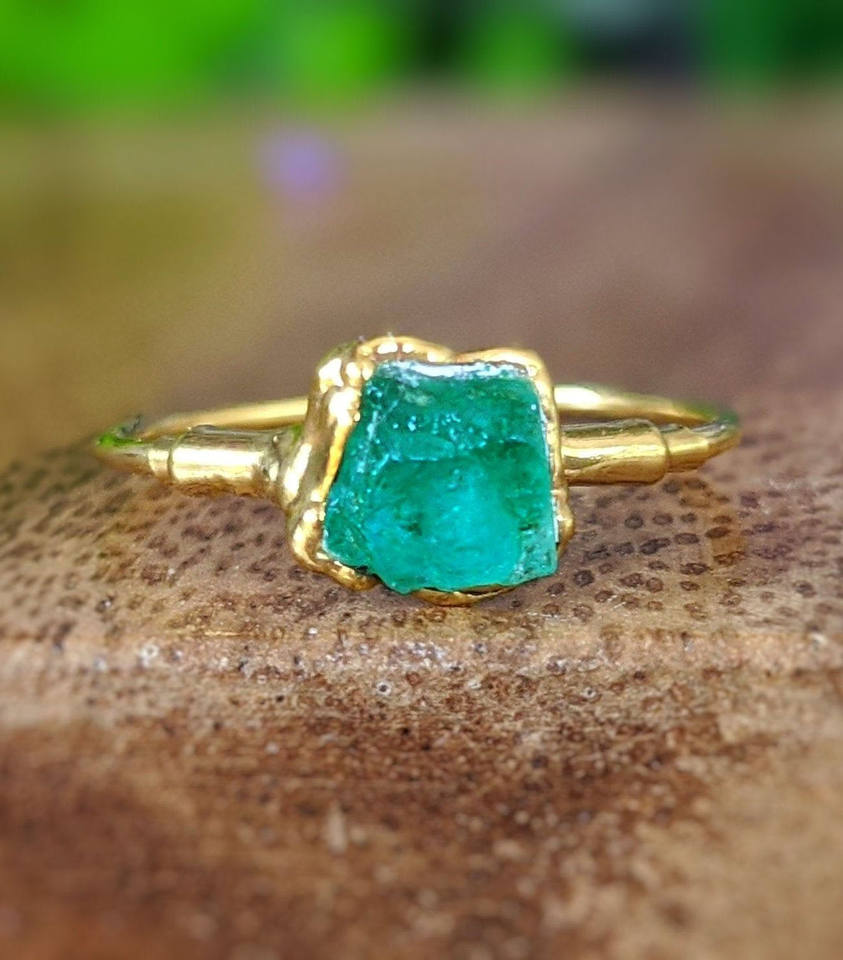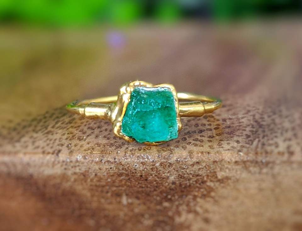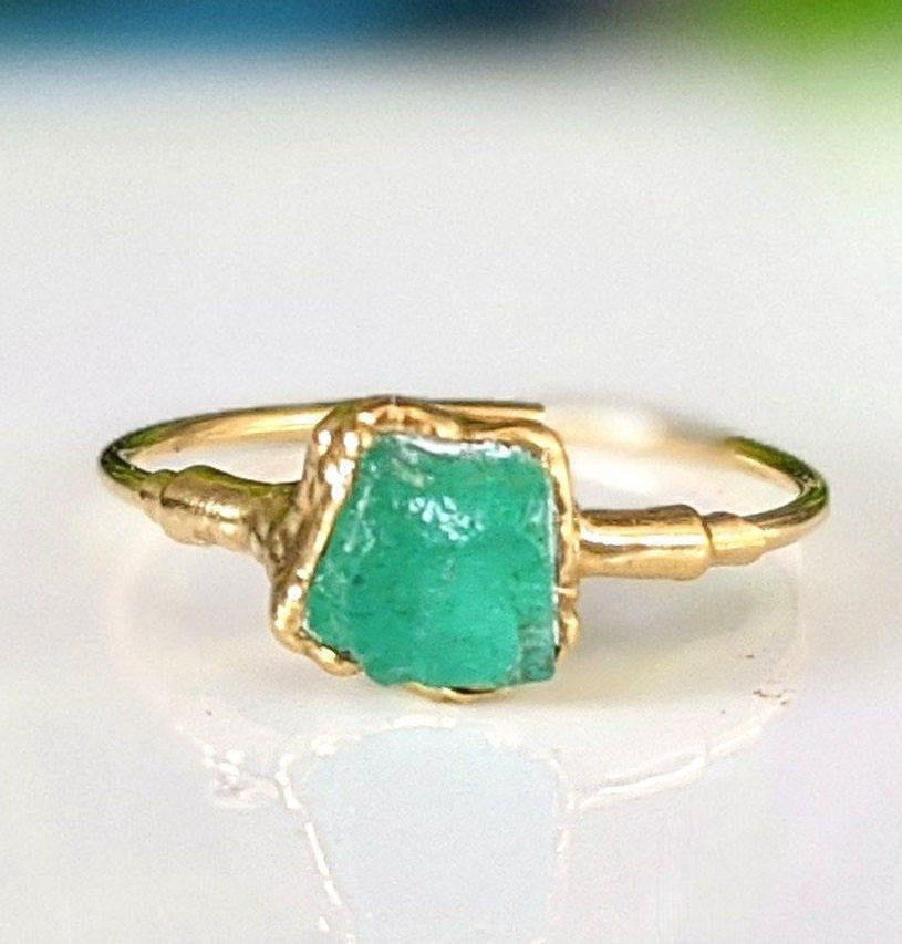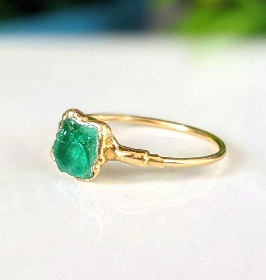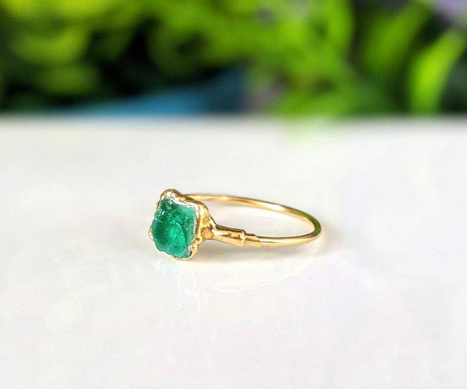 แหวนชุบทองหยาบมรกตแท้แหวนมินิมอลเครื่องประดับอัญมณีชุบโลหะด้วยไฟฟ้าแหวนธรรมชาติชุบด้วยไฟฟ้า