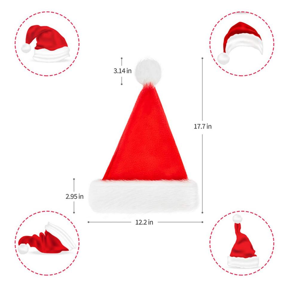 หมวกซานต้าคริสต์มาสกำมะหยี่สีแดงขาวคลาสสิกสำหรับเด็กและผู้ใหญ่
