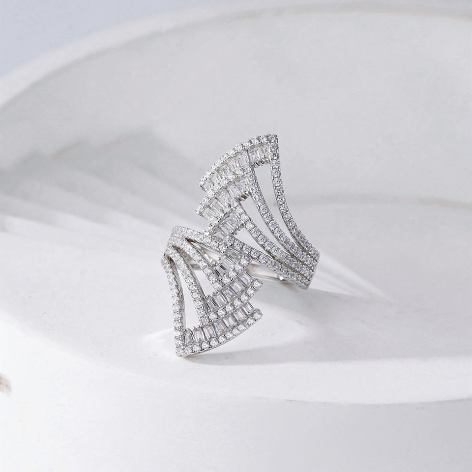 แหวนเงิน S925หญิงแบบดั้งเดิมเครื่องประดับที่ดีในห้องปฏิบัติการฝังเพชรการออกแบบทางเรขาคณิตปูการตั้งค่าโรเดียมที่ทันสมัยครบรอบ