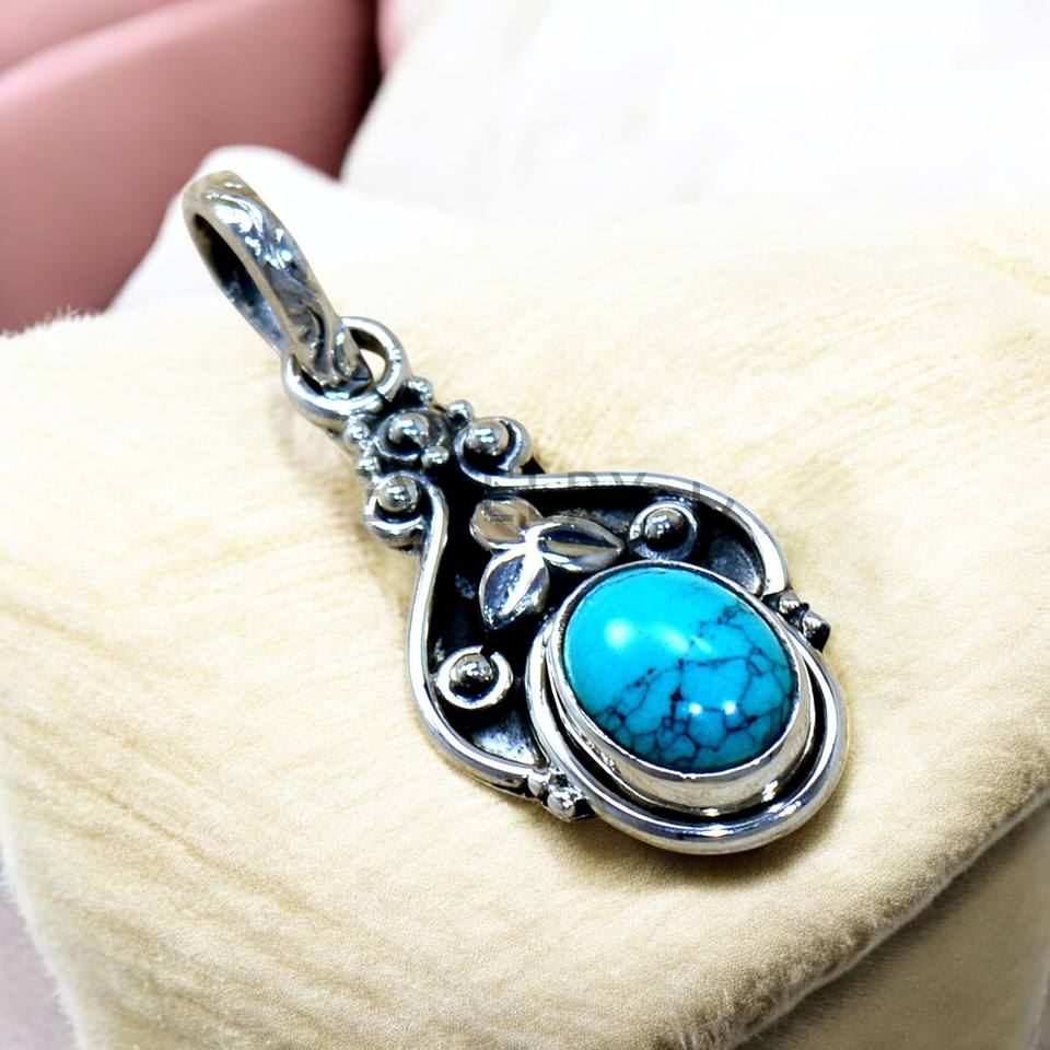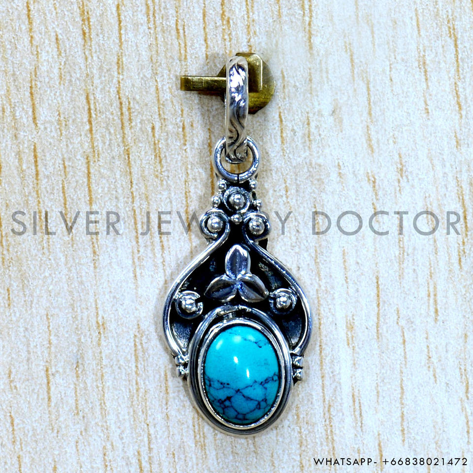 จี้เงินแท้แบบดั้งเดิมพร้อมพลอยเทอร์ควอยซ์เป็นกลุ่มอุปกรณ์เสริมเสน่ห์สำหรับผู้หญิง