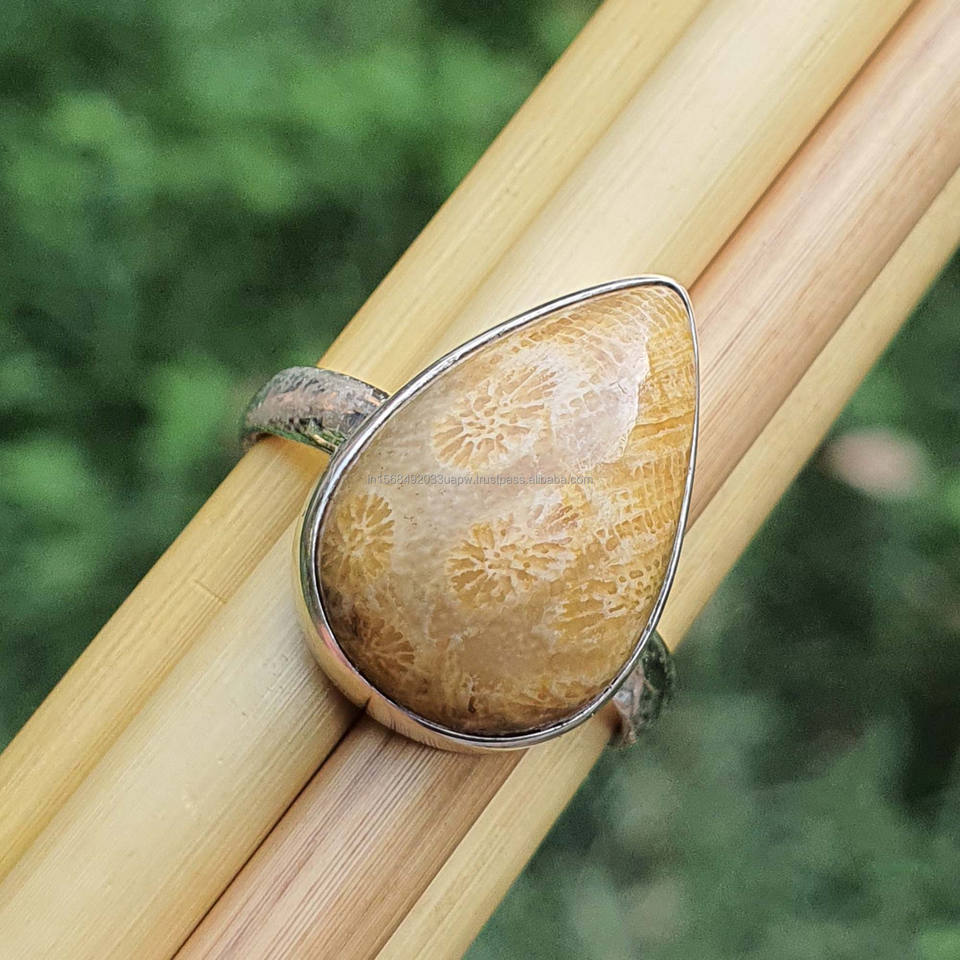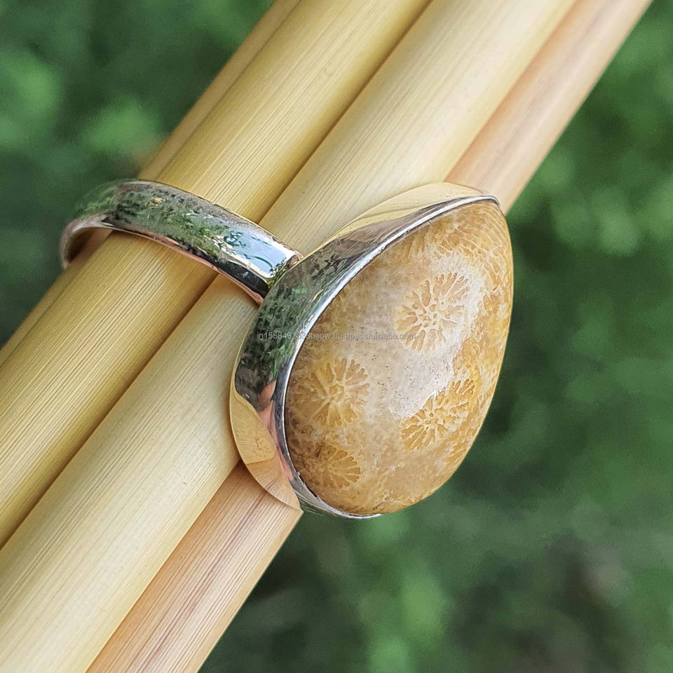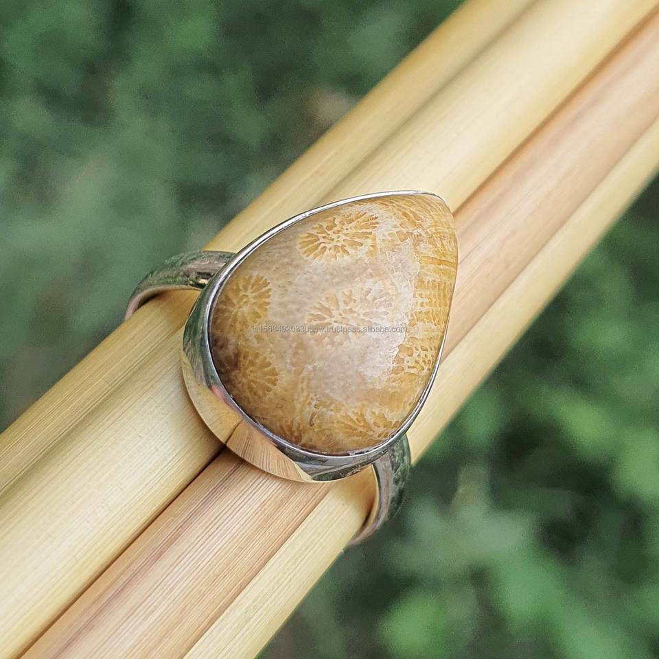 แหวนพลอยปะการังฟอสซิลของแท้925เครื่องประดับผู้หญิงเงินสเตอร์ลิงขายส่งเป็นจำนวนมากจากอินเดีย