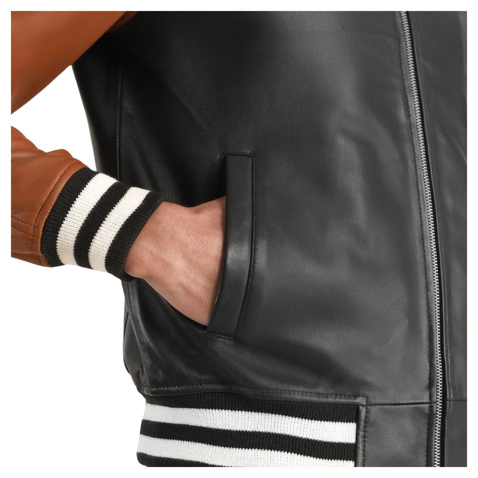 เสื้อแจ็คเก็ตหนังแท้สำหรับผู้ชาย คอตั้ง กันน้ำ ดีไซน์ล่าสุด ผลิตตามแบบ OEM คุณภาพสูง ทันสมัย ด้านหน้า