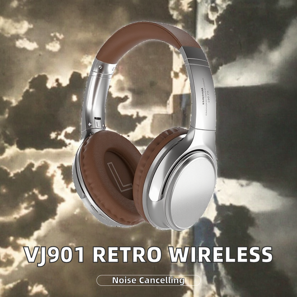 หูฟังไร้สาย VJ901 ของแท้สไตล์อเมริกันย้อนยุค 5.3 ANC IPX4 แบบครอบหู มีช่องใส่การ์ด สำหรับเล่นกีฬา พร้อมไฟ LED แบบ JL ช่องเสียบ Type-C