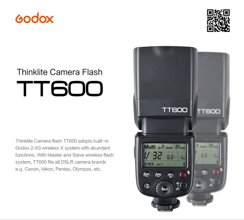 แฟลชกล้องไร้สาย Godox TT600 2.4G ของแท้ GN60 แฟลชแบบแมนนวล สำหรับ Canon Nikon Sony Fuji Olympus Panasonic Pentax