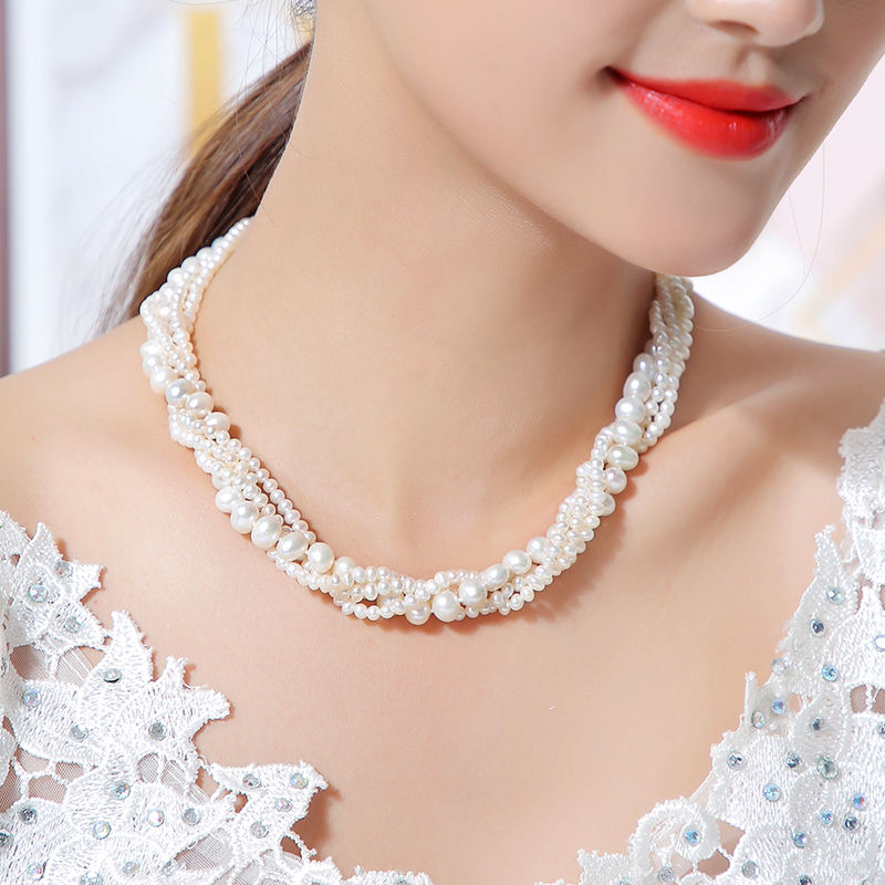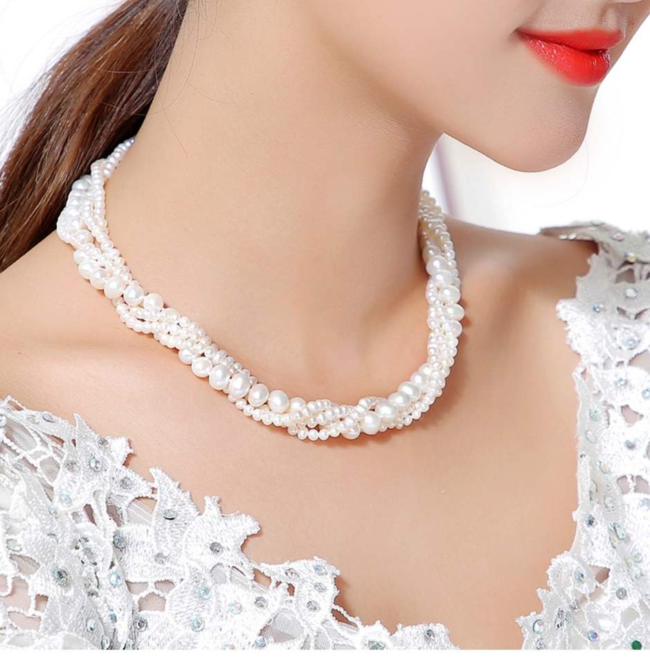 สร้อยคอมุกน้ำจืดหลายชั้นทำมือแท้ ประดับด้วยเงินแท้ 925 และชุบทอง 14K สไตล์วินเทจ สำหรับงานแต่งงาน/งานหมั้น