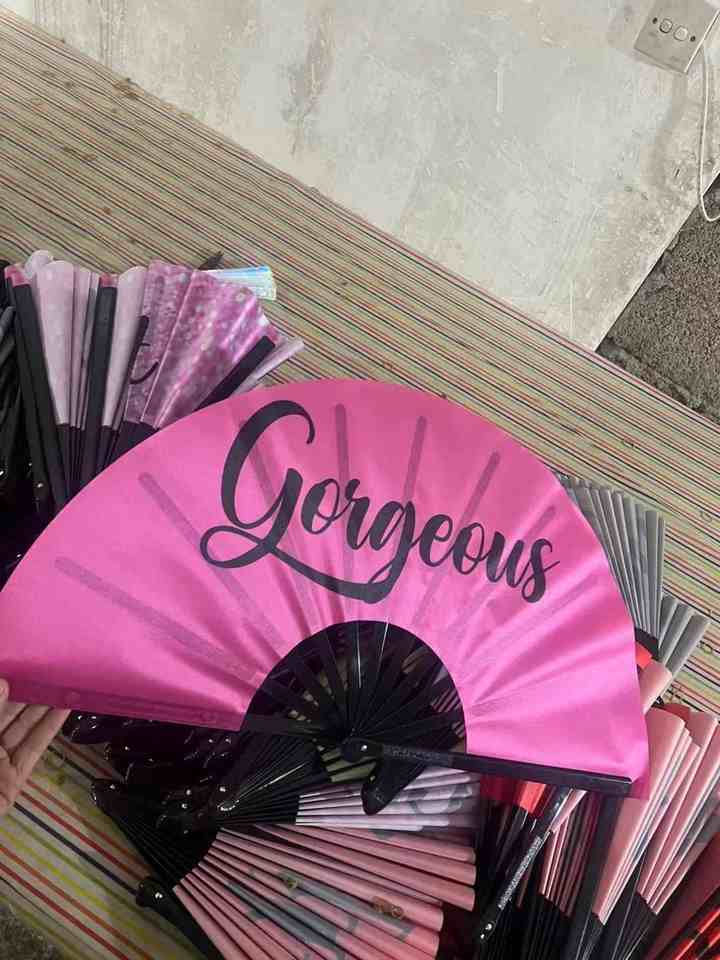 พัดไม้ไผ่สีรุ้งแบบดั้งเดิม ขนาดใหญ่ ลายเพ้นท์โฮโลแกรม เหมาะสำหรับงานเทศกาลดนตรี ของที่ระลึก ของตกแต่ง