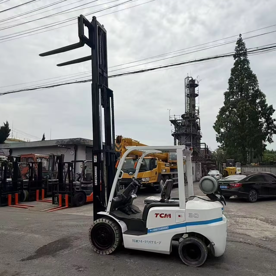 รถยกโฟล์คลิฟท์ TCM FD30 ของญี่ปุ่นแท้ สภาพดี ใช้เชื้อเพลิงเบนซิน รับน้ำหนักได้ 3 ตัน เสากระโดงสองท่อน รถยกมือสอง