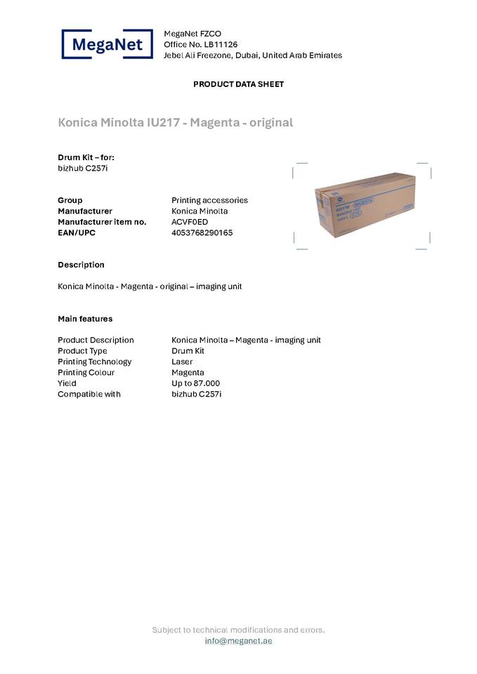 หน่วยภาพ Konica Minolta ดั้งเดิม IU217M ACVF0ED ของแท้และใหม่เอี่ยมสำหรับ C257i Bizhub