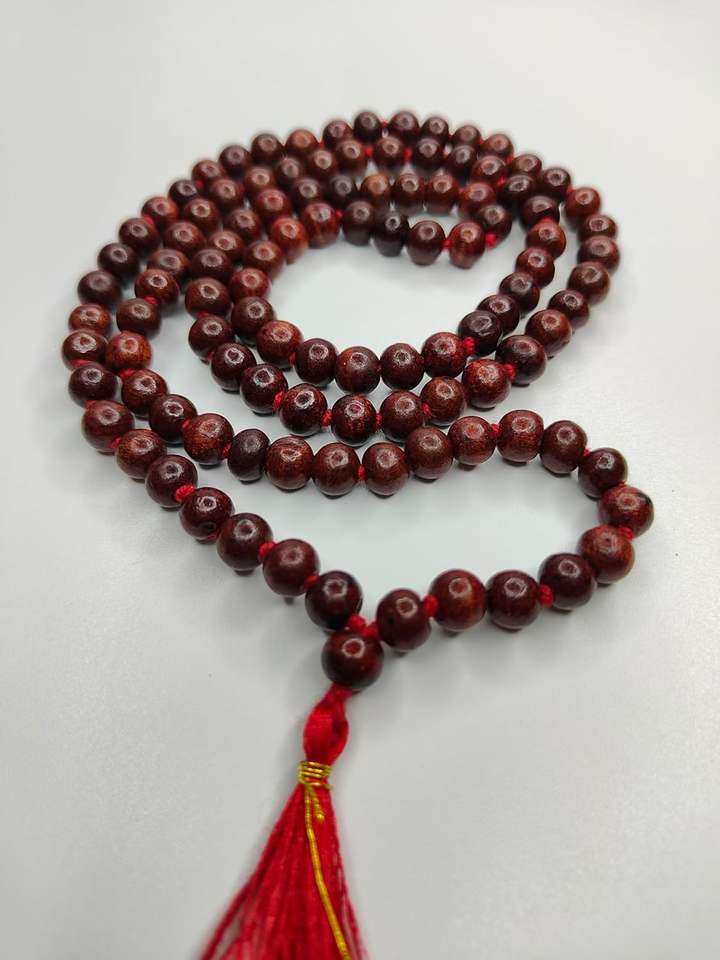 Original Lal Chandan Mala 8mm Beads manufacturer Cotton Gaumukhi Bag Natural Red Sandalwood Beads Mala for Meditation