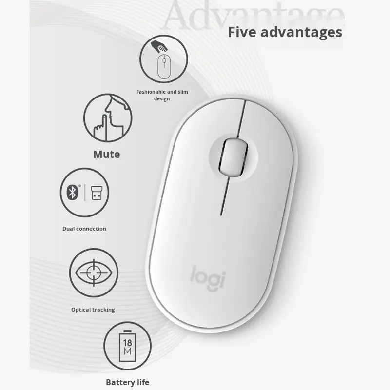 Logitech Pebble ของแท้เมาส์เล่นเกมไร้สายคอมพิวเตอร์ขนาดเล็กคลิกเงียบสีดำ M350 USB สำนักงานธุรกิจการยศาสตร์