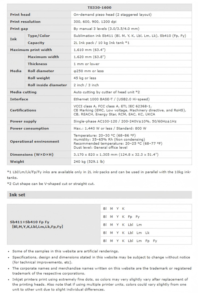เครื่องพิมพ์อิงค์เจ็ทแบบซับลิเมชั่นด้วยหมึกสีน้ำ Mimaki รุ่นดั้งเดิม TS330-1600 สำหรับสินค้าสำหรับสัตว์เลี้ยง