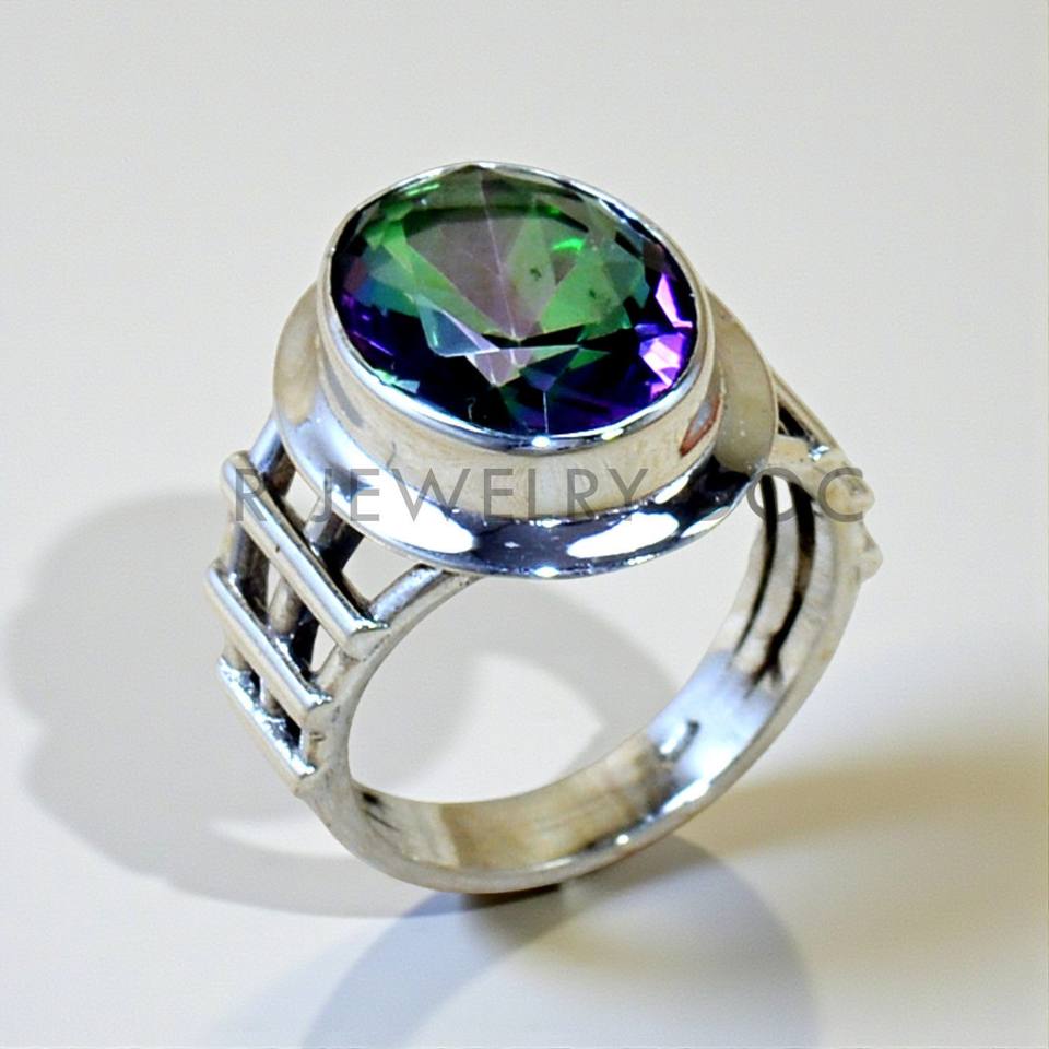 แหวนเงินแท้ 925 สไตล์โบฮีเมียนประดับพลอยมิสติกโทแพซแท้ งานแฮนด์เมด เครื่องประดับงานแต่งงานชั้นดี แหวนพลอยเงินสำหรับผู้หญิง