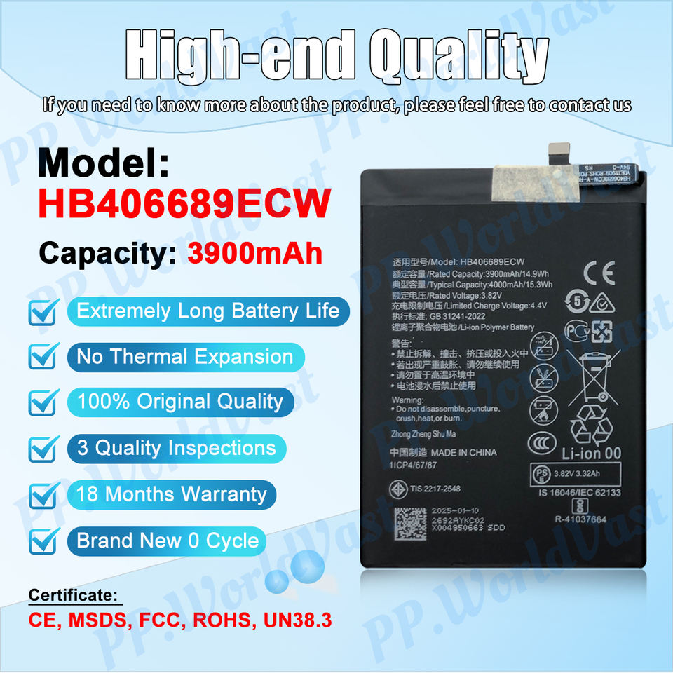 ชื่อผลิตภัณฑ์:แบตเตอรี่โทรศัพท์มือถือสำหรับ Huawei Y9 2019แบตเตอรี่ HB406689ECW