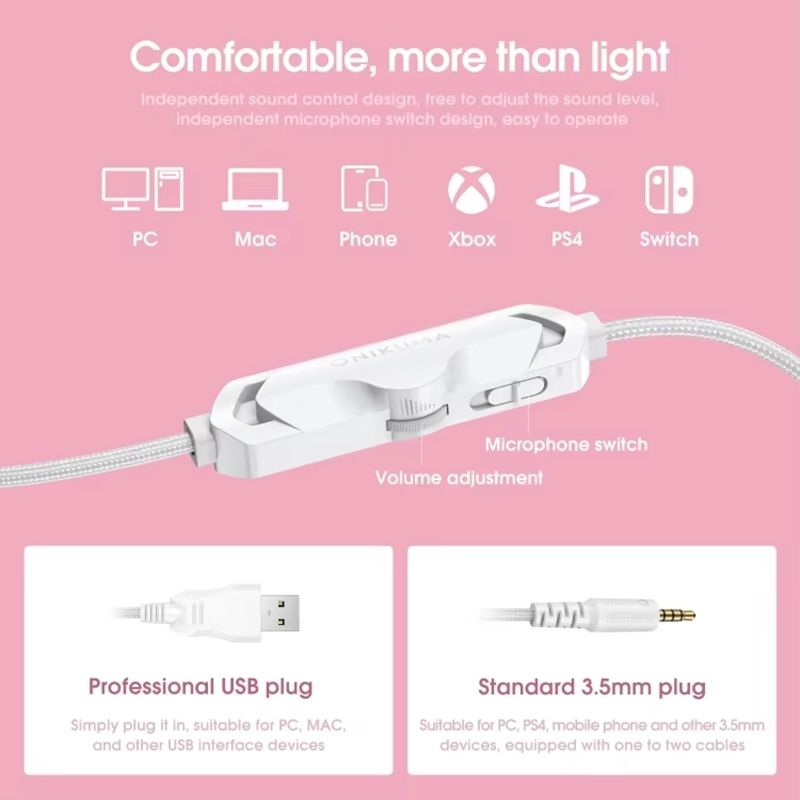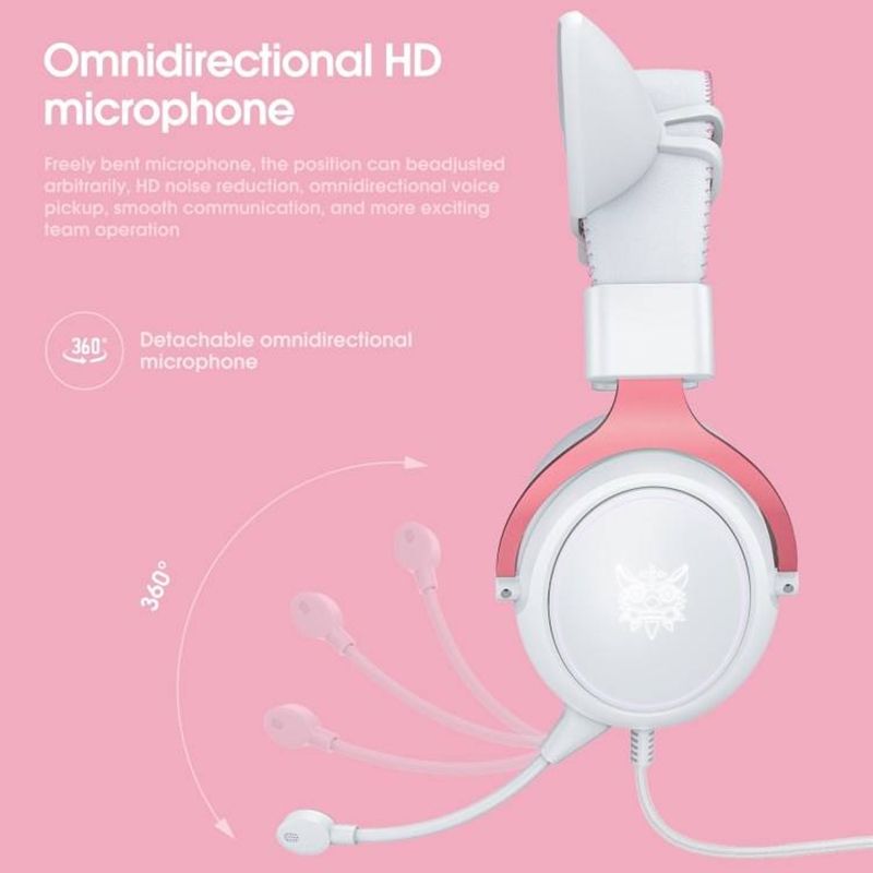 หูฟังแบบมีสาย ONIKUMA X10 รุ่นดั้งเดิม ดีไซน์การ์ตูนหูแมวสีชมพู สำหรับคอมพิวเตอร์ แล็ปท็อป เล่นเกม ฟังเพลง