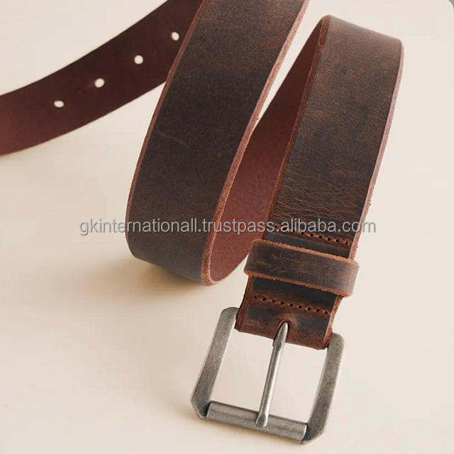 เข็มขัดลำลองหนังวัวสีน้ำตาลหนึ่งชิ้นของแท้, เข็มขัดหนังแท้สองสีทำด้วยมือและเครื่องประดับ