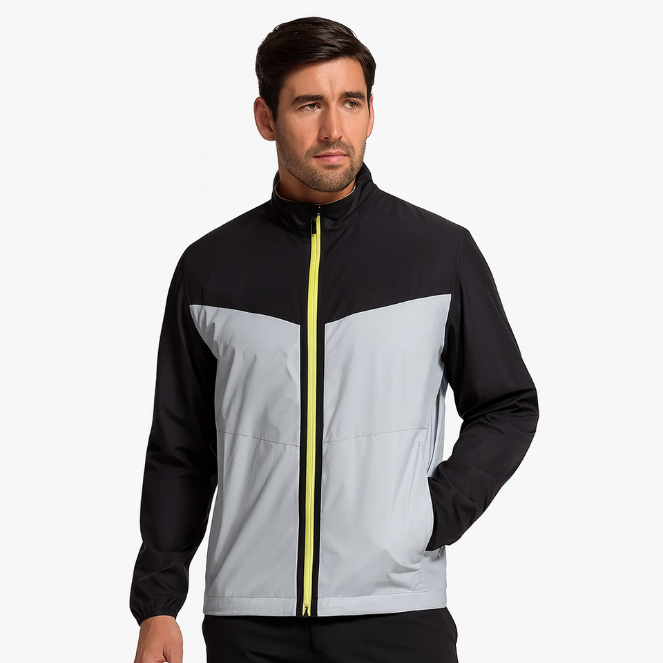เสื้อแจ็กเก็ตกอล์ฟกันน้ำสำหรับผู้ชายขนาดใหญ่พิเศษของแท้ออกแบบได้เองมีโลโก้ด้านหน้าลายเย็บปะติดแบบบาง