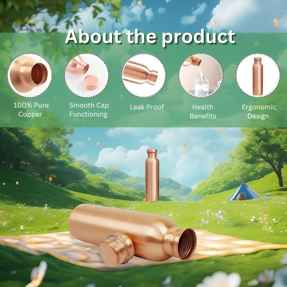 ขวดน้ำทองแดงบริสุทธิ์ของแท้ฝาปิดกันรั่วความต้องการมากสำหรับอายุรเวทประโยชน์ต่อสุขภาพธุรกิจที่สมบูรณ์แบบถ้วยดื่ม