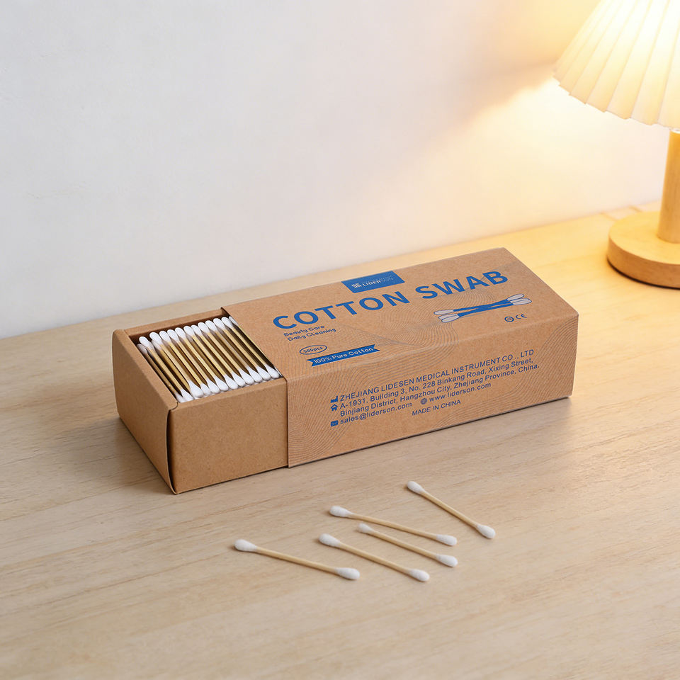 สำลีก้านพร้อมกล่องกระดาษคราฟท์ก้านสำลีก้านชิ้น/กล่อง500ก้านสำหรับ Q แบบดั้งเดิม
