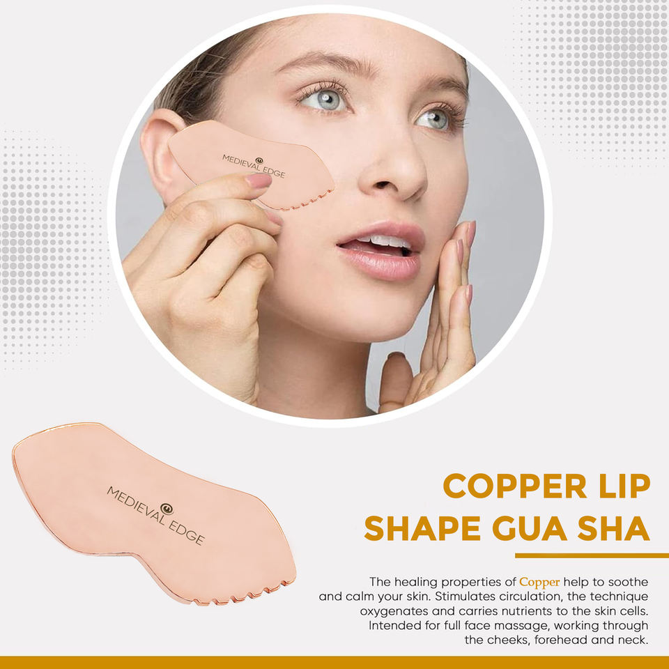 เครื่องมือกัวซาทำจากทองแดงรูปริมฝีปากสำหรับการบำบัดใบหน้าและผ่อนคลายแบบดั้งเดิมผลิตจากอินเดีย