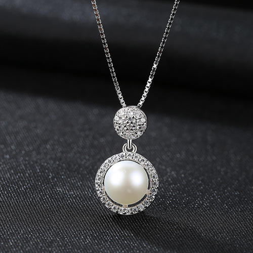 สร้อยเงิน S925แท้พร้อมเพทายสร้อยคอไข่มุกน้ำจืดธรรมชาติเครื่องประดับร่างกายแฟชั่นหรูหรา
