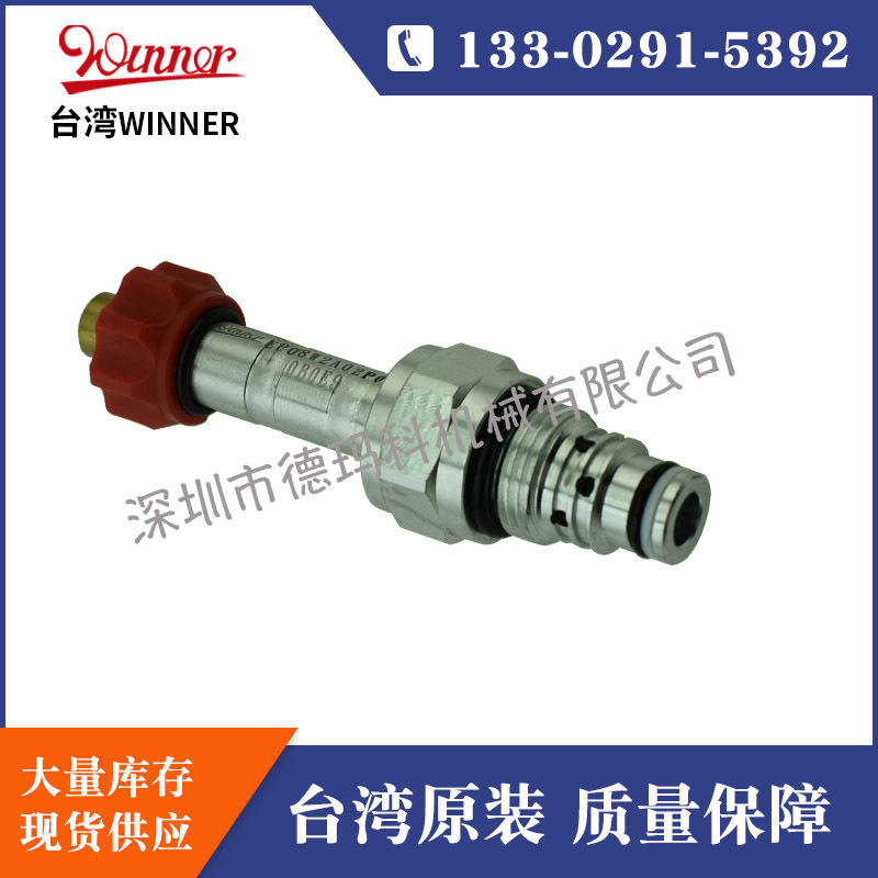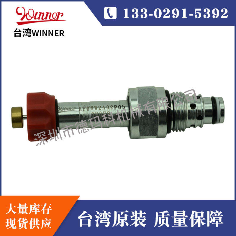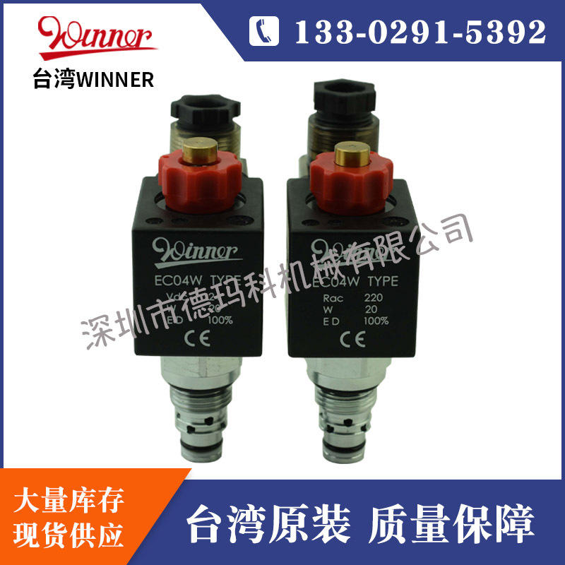 วาล์วควบคุมทิศทางไฮดรอลิกแบบโซลินอยด์ ยี่ห้อ WINNER รุ่น EP08W2A02P05 ของแท้จากไต้หวัน พร้อมก้านกดช่วยแรง สภาพใหม่