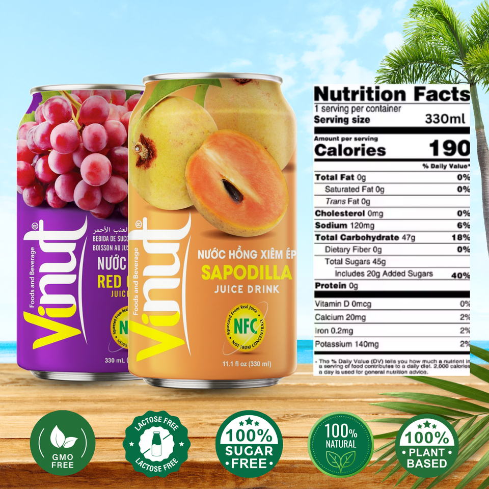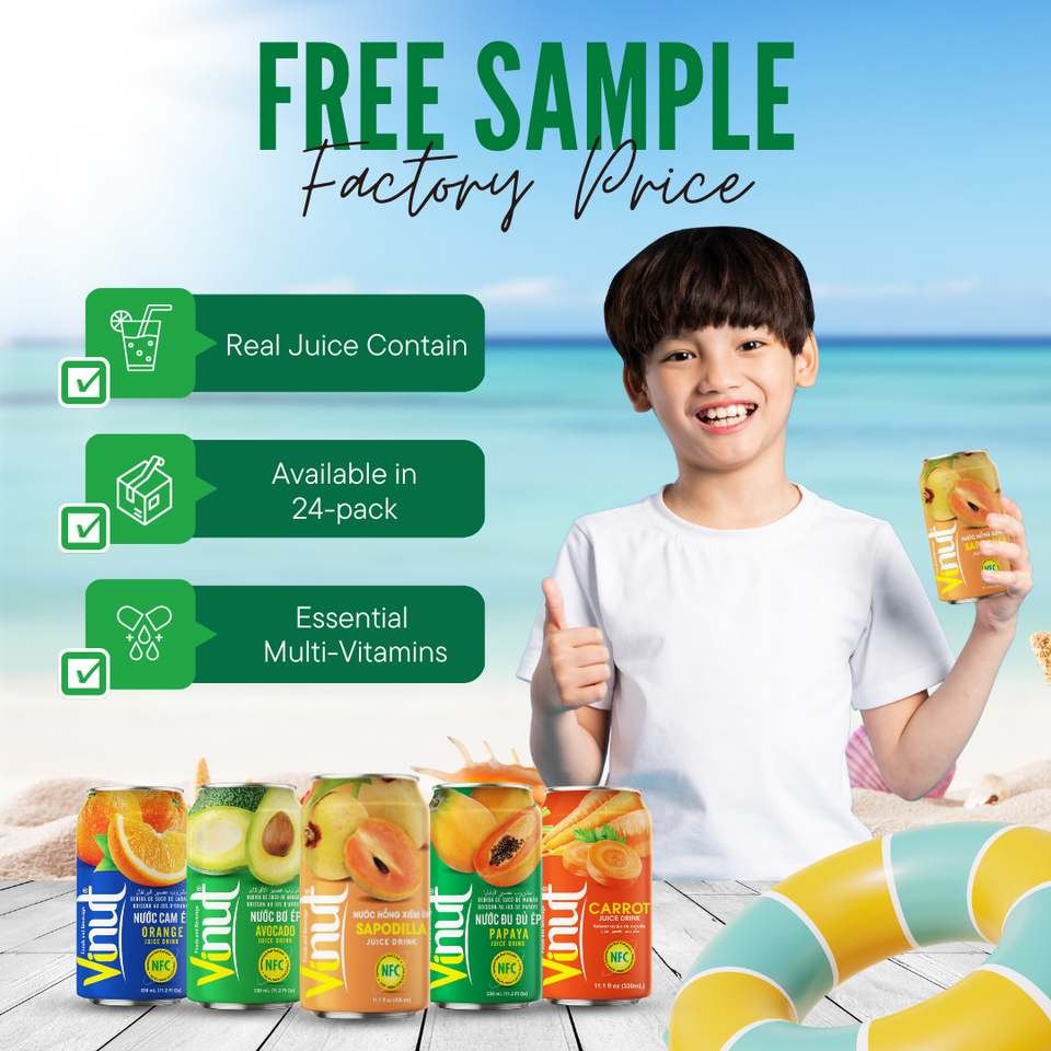เครื่องดื่มผักและผลไม้ขนาด330มล. ของเวียดนามได้รับการรับรองฮาลาลฉลากส่วนตัว