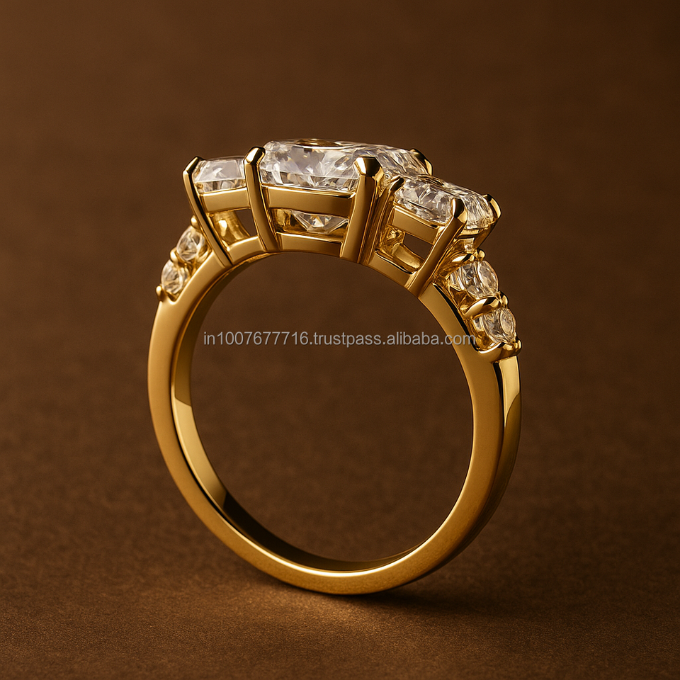 แหวนเพชรโมอิสแท้สามกะรัต3กะรัตแบบดั้งเดิมพร้อมหินกลมสี14K เครื่องประดับทองแท้ชั้นดี