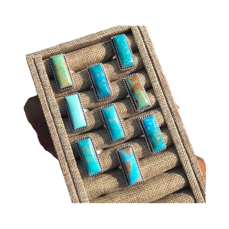 ชื่อผลิตภัณฑ์:แหวนเงินสเตอร์ลิงแถบสีเทอร์ควอยซ์ธรรมชาติ