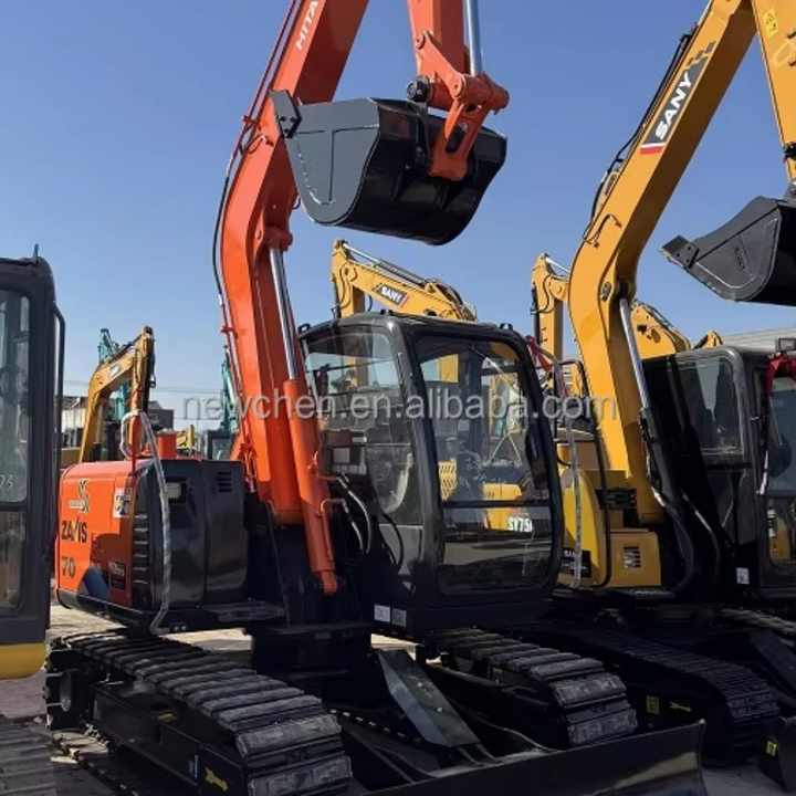 รถขุดไฮดรอลิกขนาดเล็กฮิตาชิ ZX70 มือสอง 7 ตัน พร้อมเครื่องยนต์ เกียร์ และมอเตอร์