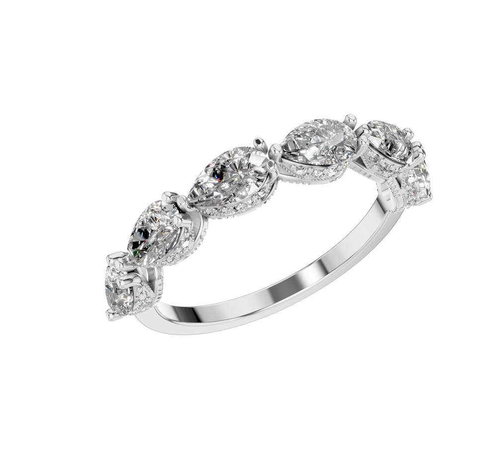 แหวนแต่งงานโมอิสซาไนต์แท้ VVS เงินแท้ 925 ชุบโรเดียม ทรงลูกแพร์ ประดับเพชรแบบหนามเตย เครื่องประดับคุณภาพสำหรับผู้หญิง
