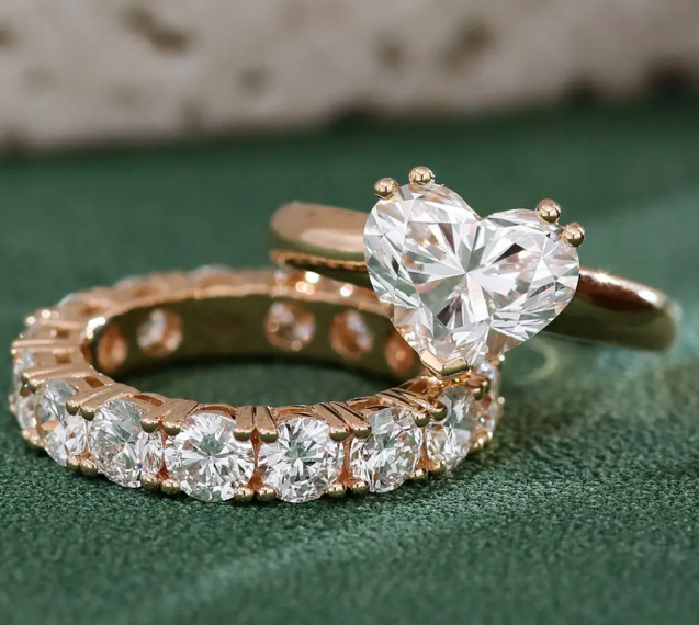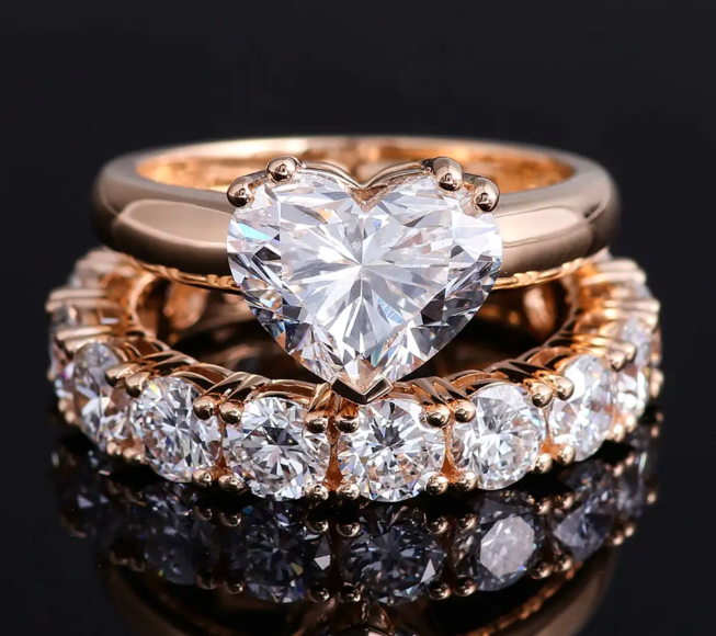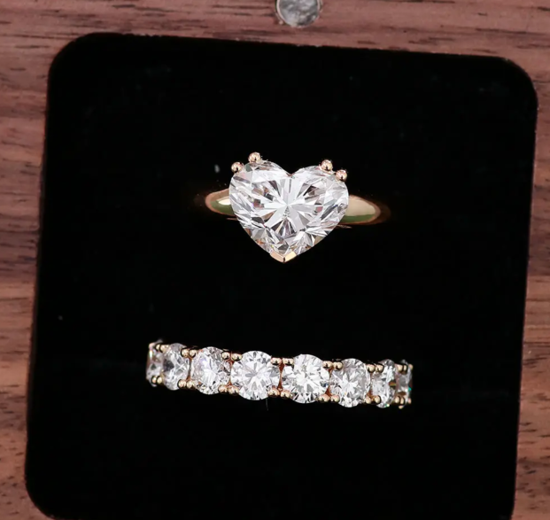 แหวนโรแมนติกทรงหัวใจประดับเพชร VVS1 ที่เพาะเลี้ยงในห้องปฏิบัติการ ชุบทองคำขาว/ทองเหลือง สำหรับผู้ชาย พร้อมใบรับรองจากผู้ตรวจสอบอิสระ