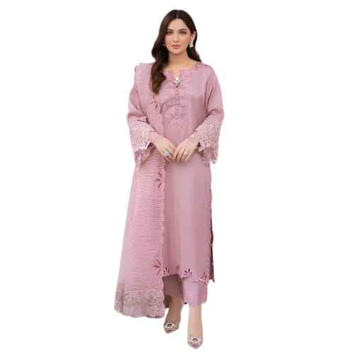 คอลเลคชั่นฤดูหนาวดั้งเดิม 2026 OEM ชุดสัลวาร์ คามีซสำหรับสุภาพสตรีชาวอินเดียและปากีสถาน สีพื้นแบบกำหนดเอง แบรนด์เนม 3 ชิ้น AM IMPEX ผ้าลินิน