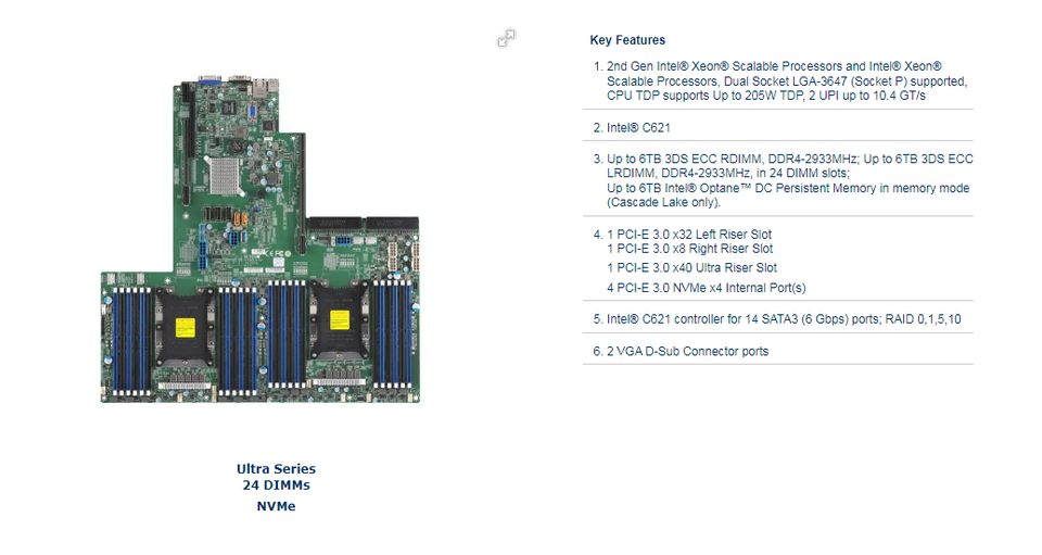 เมนบอร์ดเซิร์ฟเวอร์ Original X11DPU 24DIMM PCIe 3.0 ชิปเซ็ตเฉพาะรุ่น C621 X11DPU-XLL