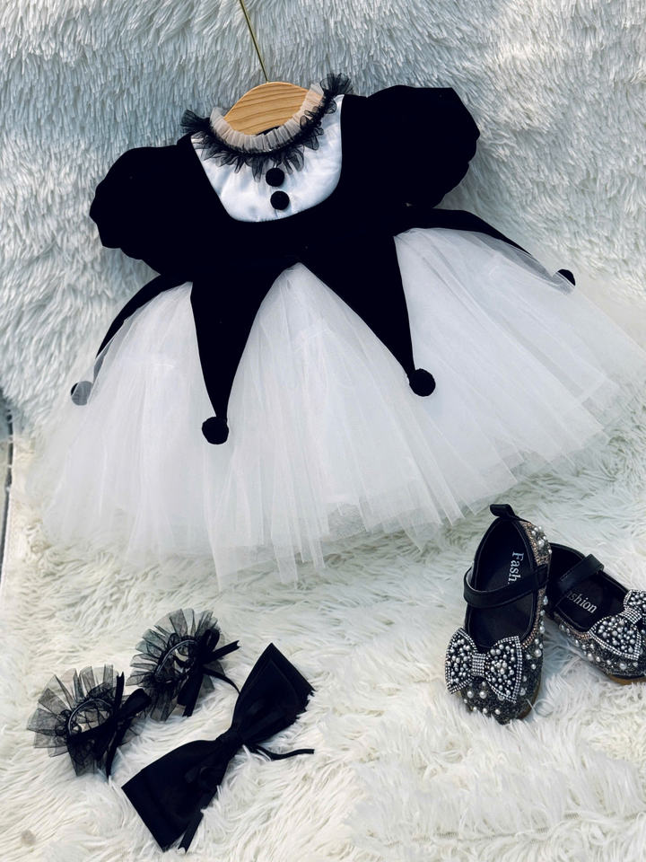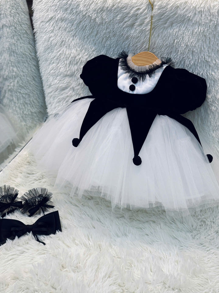 เครื่องแต่งกายฮาโลวีนสำหรับเด็กสีดำและสีขาวชุดแต่งกายสำหรับเด็กวัยวัยวัย