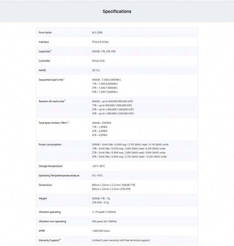 7000เมกะไบต์/วินาทีอ่าน3900เมกะไบต์/วินาทีเขียน