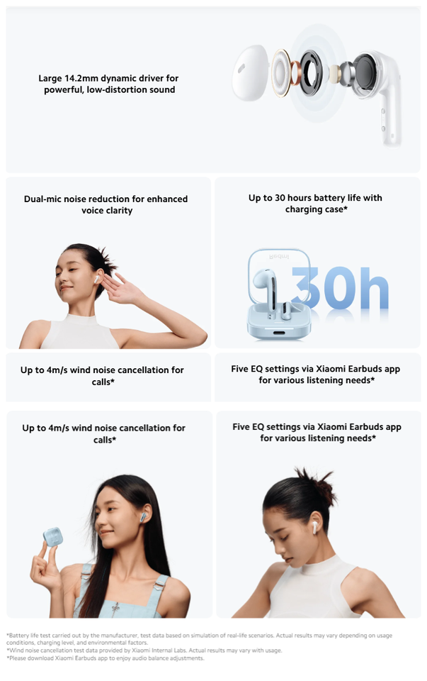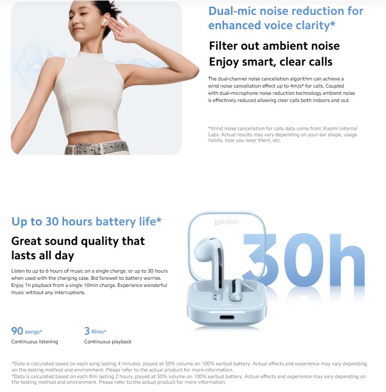 หูฟังไร้สาย Redmi Buds 6 Active น้ำหนักเบา ดีไซน์แบบกึ่งอินเอียร์ เสียงเบสทรงพลัง คุณภาพเสียงระดับพรีเมียม