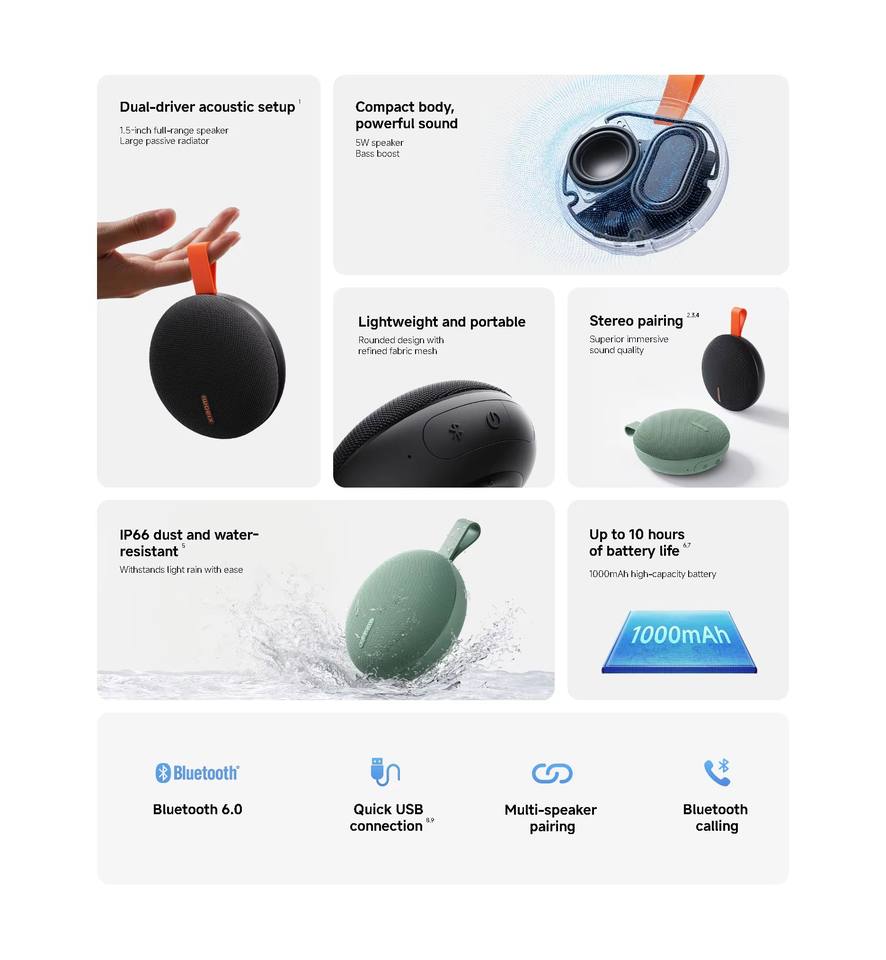 ลำโพงเสียงดัง Xiaomi Essential รุ่นดั้งเดิม ไม่มีไมโครโฟนในตัว ไม่มีไฟ LED ชาร์จผ่าน USB กันน้ำระดับ IPX-6 รองรับการควบคุมด้วยเสียงผ่านแอป