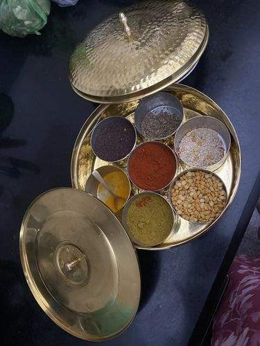 กล่องเครื่องเทศทองเหลืองสำหรับตกแต่งห้องครัว เพิ่มความสวยงามแบบวัฒนธรรมและเป็นที่เก็บของอเนกประสงค์