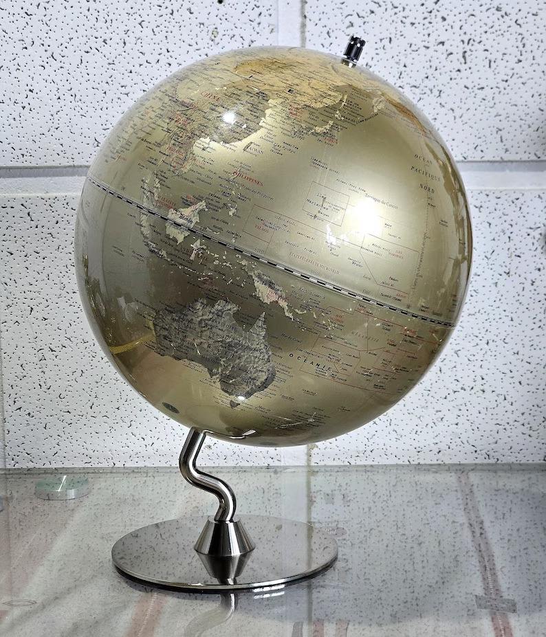ลูกโลกโลหะประดับตกแต่งอย่างหรูหรา พร้อมลวดลายมหาสมุทรและลายฉลุ ประดับด้วยทองคำเปลว เหมาะสำหรับเป็นของขวัญสุดหรู