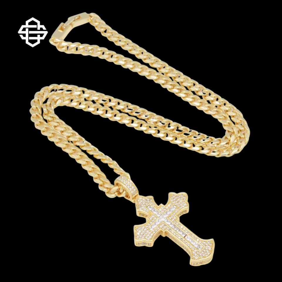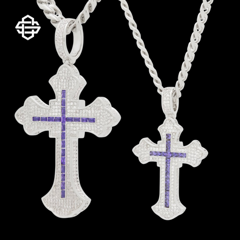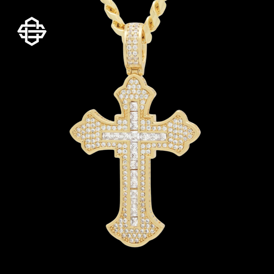 จี้ไม้กางเขนประดับเพชร CZ สไตล์ราชวงศ์หรูหราเครื่องประดับฮิปฮอปทางศาสนาสุดหรู