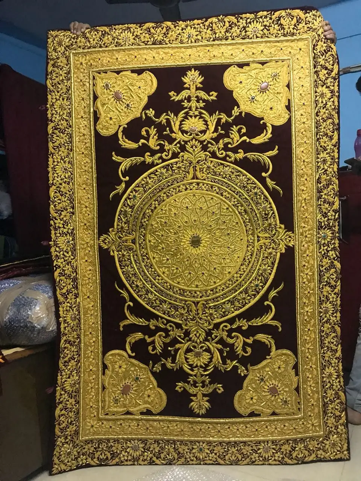 Ornate Zari Carpet with Semi Precious Stones Royal Style Handmade Rug for Luxury Villas Event Spaces and Hotels