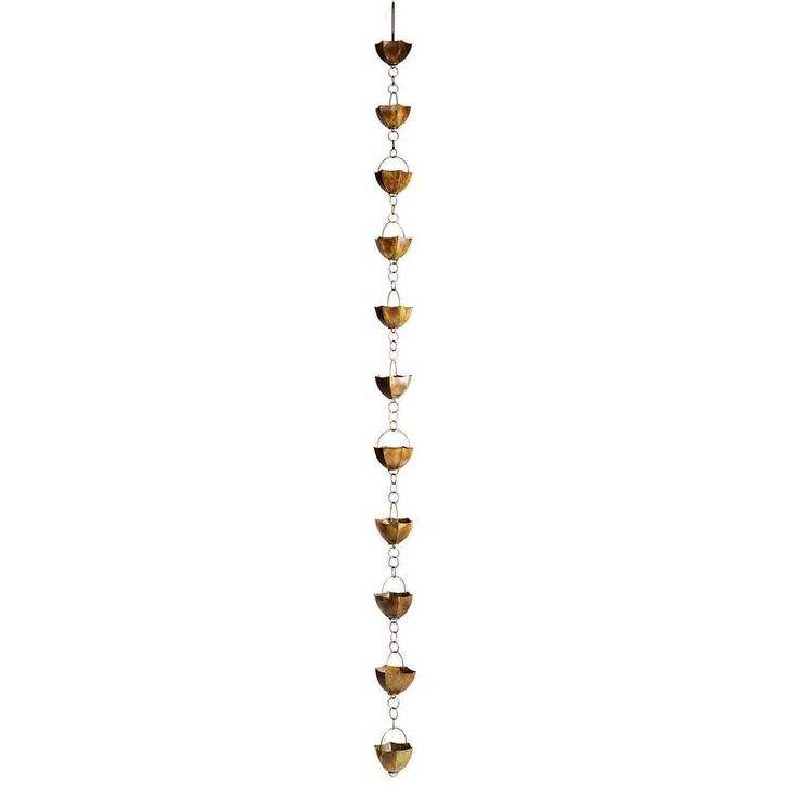Ornate metal rain chain with sculptural detail perfect for replacing boring gutter spouts in backyard gardens