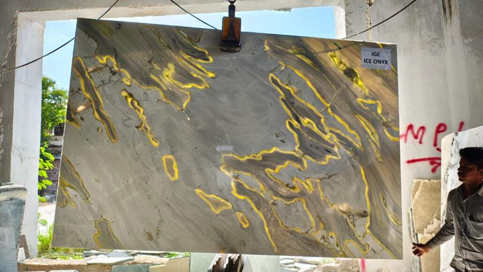 แผ่นหินอ่อนออร์ริส ฟิวชั่น ผิวขัดเงา/ผิวเรียบ หนา 20 มม./30 มม. สำหรับเคาน์เตอร์ห้องอาหารในวิลล่า ท็อปโต๊ะเครื่องแป้ง ผนังตกแต่งภายใน