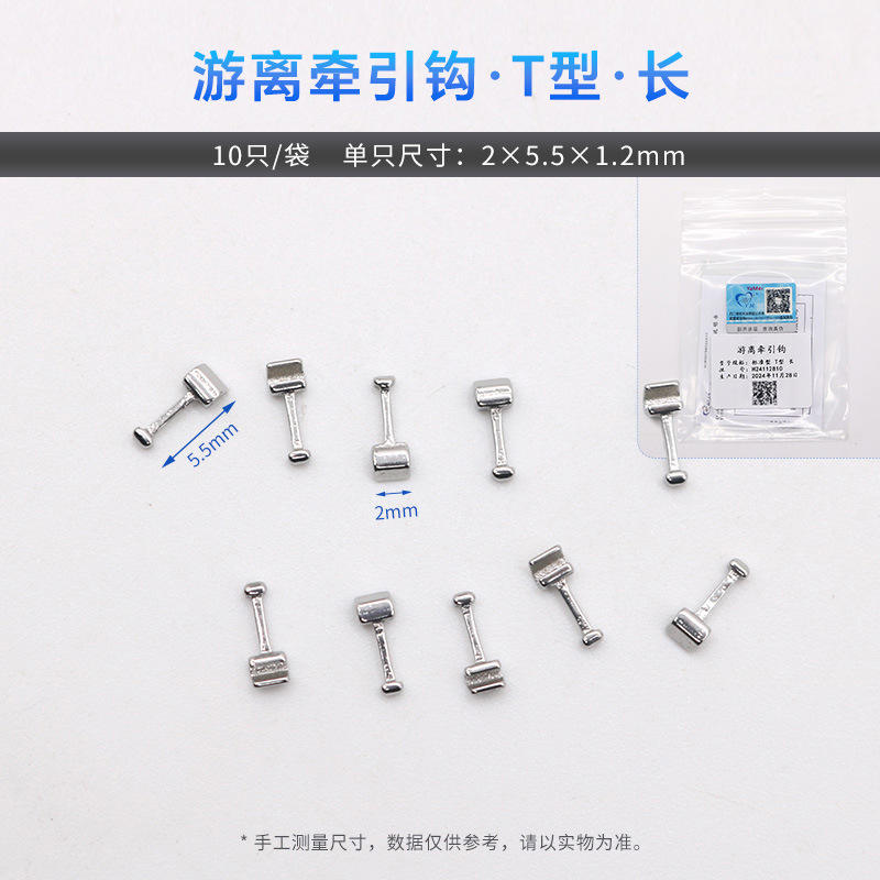 ตะขอจัดฟันแบบเคลื่อนย้ายได้ ชนิดมีห่วงหยุด รูปตัวคำถามคู่ สำหรับร้อยร้อยฟัน วัสดุโลหะ